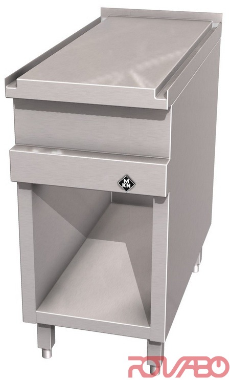 Housing made completely of chrome nickel steel (1.4301) / (AISI 304). Tightly welded top plate with lateral drain channel for easy cleaning. Optional accessories: appliance foot, 200 mm high, pluggable, +/– 15 mm height adjustable (4 feet). Upper and substructure with frame or box drawers (optional).