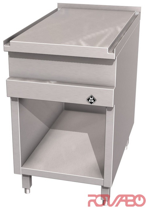 Housing made completely of chrome nickel steel (1.4301) / (AISI 304). Tightly welded top plate with lateral drain channel for easy cleaning. Optional accessories: appliance foot, 200 mm high, pluggable, +/– 15 mm height adjustable (4 feet). Upper and substructure with frame or box drawers (optional).