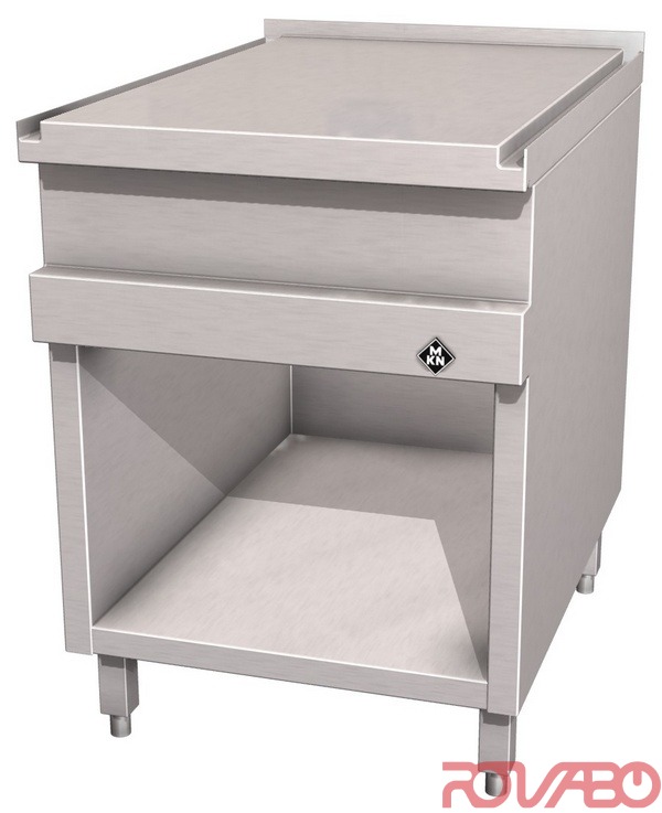 Housing made completely of chrome nickel steel (1.4301) / (AISI 304). Tightly welded top plate with lateral drain channel for easy cleaning. Optional accessories: appliance foot, 200 mm high, pluggable, +/– 15 mm height adjustable (4 feet). Upper and substructure with frame or box drawers (optional).