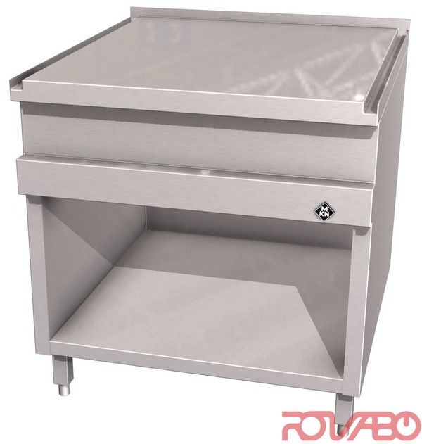 Housing made completely of chrome nickel steel (1.4301) / (AISI 304). Tightly welded top plate with lateral drain channel for easy cleaning. Optional accessories: appliance foot, 200 mm high, pluggable, +/– 15 mm height adjustable (4 feet). Upper and substructure with frame or box drawers (optional).