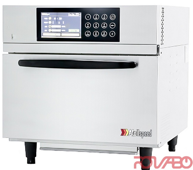 More space with a proven hybrid oven combination of impingement (controllable heating, even browning and crust formation, perfect roasting and baking results) and microwave technology, which makes the baking, frying and cooking times of up to 20 times shorter. Perfect tanning and crust formation provides an excellent taste. Baking surface: 425x325 mm, chamber: 450×350×200 mm. Catalytic filter: no extractor system necessary, maintenance-free and self-cleaning, no odour or flavour transfer; energy: 400V connection, short heating times, powerful microwave; cleaning: hygienic baking chamber made of high-quality stainless steel (black edition on request), glass display, cool down mode; operation: 7" colour touchscreen, 100 programme channels, 24 channels can be set as favourites for easy selection; сompact design, small footprint, more volume.