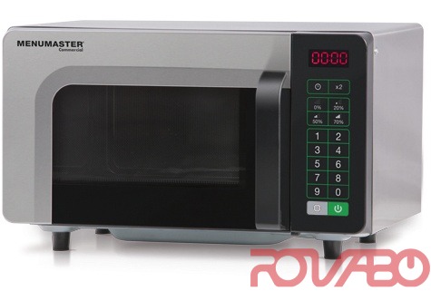 Unique front of the house countertop design. Grab and go handle. Up to 50 cycles per day. Seamless LED touchpad. Ideal applications: cafeteria, lunch room, board room, staff/teacher lounge, light duty kitchen. ComServ service and support. Touch Controls: 20 programmable menu items simplifies cooking; 5 power levels and 4 cooking stages for cooking flexibility; multiple quantity pad calculates the proper cooking times for multiple portions. Programmable control: 10 pads. Braille: overlay available. Max. cooking time: 30:00. Microwave distribution: rotating stirrer, bottom. Defrost: 20% power. Multiple portion setting: X2. Easy to use: see-through door and lighted interior for monitoring without opening the door; accommodates a 305 mm (12”) platter, prepackaged foods and single servings. Signal: end of cycle, adjustable. Easy to maintain: stainless steel exterior wrap, door, and oven interior for increased durability; sealed-in borosilicate glass shelf for easy cleaning. Power Consumption: 1.5 kW. CEE 7/7 “Schuko” plug. 1.5 m cord. 1 magnetron. Optional accessories: oven cavity shelf; non-stick baskets; stainless cart/equipment stands.