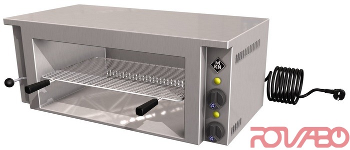Housing made of chrome nickel steel (1.4301)/(304). 5 height levels. Inner chamber: 546x329x230 mm. Power control, control lamp, radiating heating elements, electric connection cable with earthed plug 16 Amp, IPX 2. Accessories: 1 Grill grid with 2 handles is included. Optional accessories: 1 GN-container 1/1, 20 mm deep, not perforated (for use as drip tray), 1 frying plate, 1 wall bracket 630x395x315 mm.