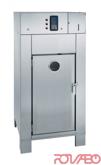 The BASTRASmart500 is a completely equipped universal system which allows you to use countless options for processing your products. Customers can watch as you smoke Vienna sausages, mature smoked sausage, roast knuckles, process fish or cheese. Standard equipment: BASTRA smoke condensate system; fully automatic compressed air foam cleaning to be connected to a compressed air supply at customer’s side; integrated receiving frame with 8 supports for smoke sticks with a length of 570 mm as well as for GN 2/1 and GN 1/1 containers or grids; inspection window; internal lighting; built-in cooling shower; touch panel control BASTRAProfi500 fitted directly in the front top covering. BASTRA smoke condensate technology: by the patented BASTRA-FR-nozzle system liquid smoke is converted into a gaseous state – this guarantees traditional smoke taste. Our process engineering is based on smoking technology with regenerated smoke from purified smoke condensate. Unwanted pollutants like tar, benzpyren and ash particles are filtered out intricately. The BASTRAProfi500 microprocessor has been optimally adapted to our customers’ requirements: brilliant 7” TFT colour monitor with touchscreen surface; straightforward operation; 99 programs with 20 steps each; conversion of the language of the text display; switch-off condition (end of step) related to time, when core temperature is reached, FC value or cooling (temperature of core no longer reached); steps can be copied, pasted and deleted; password-protected settings; entry of batch number; user rights for administrators; interfaces: LAN (RJ45), USB serial port for connection to a PC; PC interface for the visualisation software BASTRAProfi.net. Special equipment: glass door (safety glass); cooling evaporator to be connected to a local cooling machine; temperature range up to 230°C with a heat resistant glass door; 3rd air speed for ripening; special paint finish, customer logo. Motor power – 0.55 kW. Optional power – 21.55 kW. Speed of rotation - 720/1400 rpm, 2 steps, option - 360/720/1400 rpm, 3 steps. Required compressed air supply at customer’s side: 7 bar constant pressure, air delivery volume 200 l/min; required water supply at customer‘s side: 3 bar minimum. Accessories/ charging unit consisting of: 576x658x1066.5 mm charging rack, 8 supports; 575x1000x1002 mm transport trolley for the charging rack, 2 castor wheels with locking device; 870x684x318 mm plinth for the storage of the charging rack; guide rails for the charging rack; smoke sticks 570 mm long, grates, GN trays, GN 2/1 and GN 1/1 containers, GN grids.