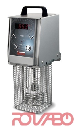 High precision warmer with temperature control. Working temperature display. 25 storable programs. IP X3 protection rated stainless steel structure. Can be applied to the pot by means of a clamp. (max depth 16,5 cm). Protection device switches off the warmer in case of accidental use outside the liquid. Circulating pump to help the best product mixing. Temperature sensor to prevent overload and overheating. Polycarbonate lid for better thermal insulation and less waste of heat - Energy Saving! Optionals: 1/1 GN s/steel container with lid. 2/1 GN s/steel container with lid. Vacuum bags dividing.