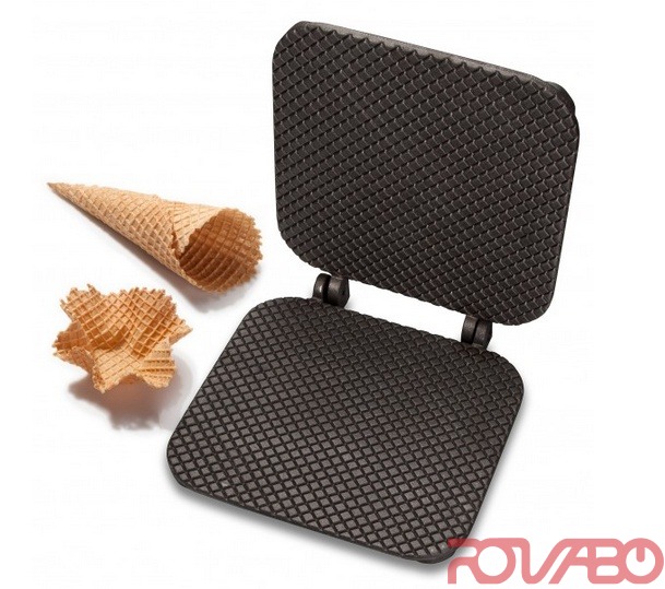 Ice Cream Waffle Interchangeable Plates for Thermocook®. Do you offer home-made ice cream? Why don‘t you also bake the cones yourself? Your customers will appreciate it! Due to the improved casting process of the baking plates your ice waffles will be perfectly thin and crispy. Baking surface 260x260 mm. Massive cast iron.