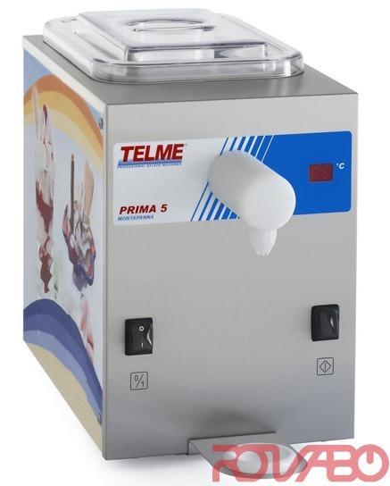 Functional, cost-effective cream whippers of the Professional Series, suitable for small/medium enterprises. Available at a reasonable price. These machines make whipped cream with a signifiant overrun and an unchanging, stable texture; they keep the liquid cream at 4°C, transforming it into whipped cream by passing through the labyrinth and allowing manual dispensing; the transparent lid provides a clear view of the amount of liquid cream in the reserve tank. They are equipped with removable containers to facilitate washing and sanitizing with the best possible hygiene. The functional and cost-effective cream whippers of the Professional Series. Equipped with a rotary pump, they process light and heavy creams, for the desired type of whipped cream. The pump pushes the liquid cream and the air in into the labyrinth and as they pass through they are transformed into whipped cream. Both liquid and whipped cream are suitably refrigerated during the entire process in the machine up to the dispensing nozzle. The removable container, indirectly cooled, keeps the liquid cream in perfect conditions and does not separate fat from water. Reserve - 5 L removable. Hourly production -100 L.