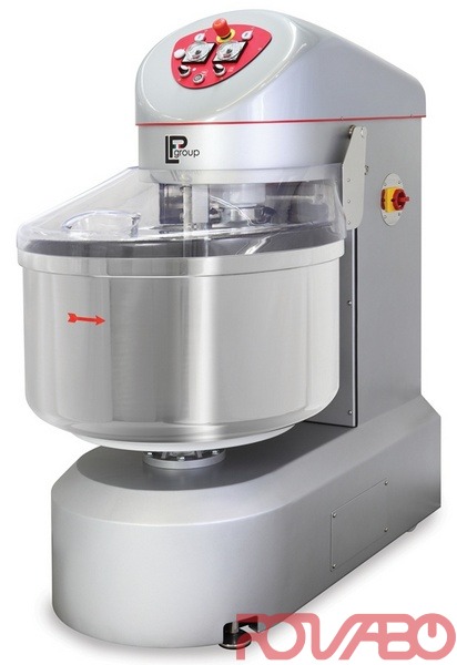 Unique body in painted steel. Bowl, spiral tool and breaking column in stainless steel. Fixed bowl. Fitted with two motors. Two speeds on spiral tool. Possibility of bowl inversion in 1st speed. Easy dough extraction thanks to the bowl jog push button. Control panel with two electro-mechanical timers. Mobile bowl cover at choice among: stainless steel grid, ABS mobile bowl cover or transparent shockproof mobile bowl cover in PMMA. Straight breaking bar without feet suitable for stiff dough. Double spiral transmission. Feet in stainless steel. Reinforced spiral motors. This line is conceived for stiff dough mixtures with an hydration up to 45% with European flour and for an artisan usage (1shift per day).