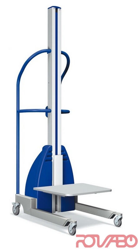 Min/maks., pakelimo aukštis 140/2035 mm. Pakelimo greitis, 80 mm/sek. Vidiniai/išoriniai ratukai Ø80/125 mm. Krovinio svoris - 150 kg. Labiausiai saugus ir patogus būdas dirbti. Jokių kabelių, kelimo prietaisas veikia su baterijomis. Nuo 90 iki 120 maksimalios apkrovos pakrovimo ir iškrovimo ciklų. Baterijų pakrovimo laikas 8 valandos, kaip įprasta naktį, prieš naują darbo dieną. Pakrovimo įtampa 100 - 240 V. Baterija 2x7,5 A/val., 12 V. Kelimo įrenginys gali būti naudojamas ir ligoninėse. Komplekte: platforma 485x460 mm. Pagaminta iš nerūdijančio plieno ir poliamido. Greito keitimo sistema.