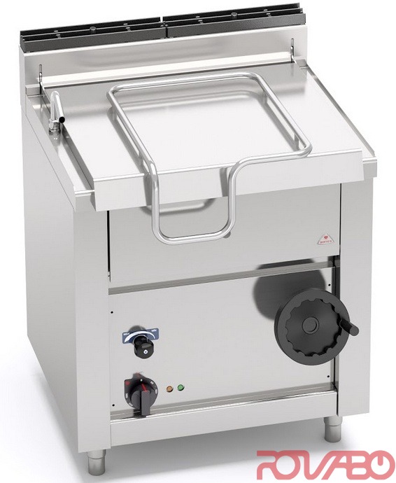 Gaminimo talpa, paviršius ir sienelės iš nerūdijančio plieno AISI 304. Keptuvė rankiniu būdu pakreipiama iki 80°, jos išmatavimai: 575x475xh200. Neprideganti keraminė apdaila, užapvalinti kraštai. 10 mm storio nerūdijančio plieno talpos dugnas, suvirintas iš išorės geresniam šilumos laidumo užtikrinimui. Dangtis su kondensato surinkimo sistema. Vienodas karštis, nes kaitinimo elementai tiesiogiai liečiasi su pagrindu. Galingumas reguliuojamas jungikliu (100°C – 300°C). Apsauginis termostatas. Reguliuojamos kojelės.