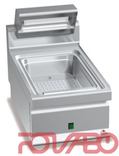 Darbo ir priekiniai paviršiai iš nerūdijančio plieno AISI 304. Gastronominių indų padėklas pagamintas iš nerūdijančio plieno, viršutinė ir apatinė šildymo sistemos leidžia išsaugoti paruošto produkto savybes. Po talpa - didelio šiluminio efektymumo keraminė lempa. Yra nutekėjimas riebalams, galingumo perjungėjas. Statomas ant stalo.