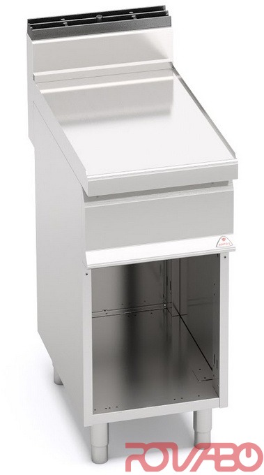 Darbo ir priekiniai paviršiai iš nerūdijančio plieno AISI 304. Paprastas naudojimas ir valymas. Yra stalčius virtuvės reikmenims laikyti. Su atvira spintele. Reguliuojamos kojelės.