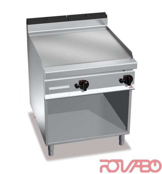 Našumas - 250 mėsainių Ø100/val. Lygus kepimo paviršius iš maksimaliai tvirto arba šlifuoto plieno. Vienoda temperatūros paskirstymo sistema aprūpina optimalų gaminimą be šilumos praradimo, tuo pačiu taupo elektros energiją. Maisto likučiai nukreipiami į specialų kanalą, kur surenkami dideliame rezervuare į kurį papuola per didelę likučių surinkimo angą. Vamzdeliniai degikliai su stabilia liepsna. Budinti liepsna ir apsauginis vožtuvas su termopora. Elektrinis pjezo uždegėjas. Galima naudoti ir suskystintas dujas: G30/G31, G20, G25.