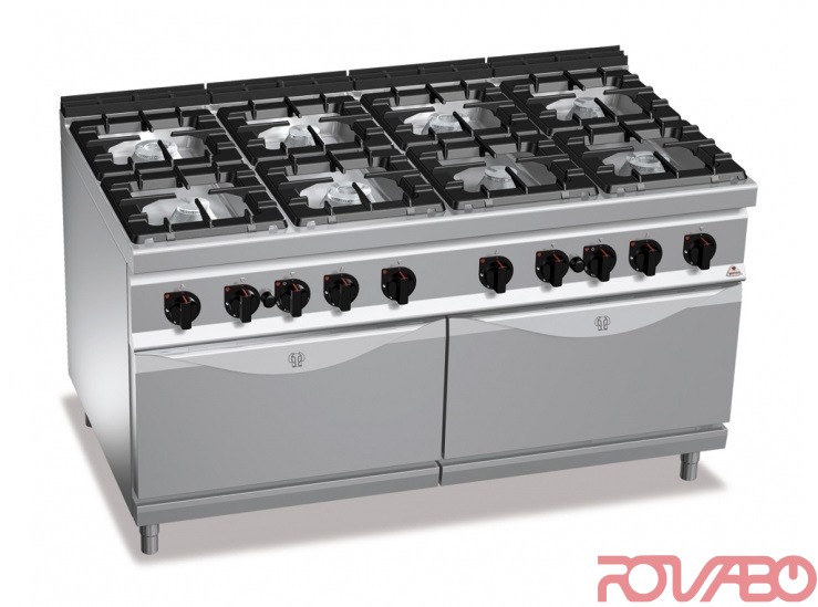 Įrengimas pagamintas iš nerūdijančio pieno AISI 304. Hermetiški aukšto galingumo degikliai iš pastorinto ketaus su nikeliuota paviršiaus apdaila, 4x3.5 kW, 2x7 kW, 2x12 kW. Idealiai tinka naudoti didelių diametrų puodus. Atskiros grotelės ant degiklių. Dėka savo ištisinio ir užapvalinto dizaino, grotelės sudaro ištisinį darbo paviršių, ant kurių galima lengvai perstumti indus. Grotelių pastorinimas garantuoja ilgą tarnavimo laiką ir tvirtumą. Aukšta efektyvi energetika leidžia taupyti dujas iki 30% per metus, lyginant su tradiciniais degikliais. Pilnai nuimamas virimo paviršius ir pilnai užapvalinti kraštai. Galima naudoti ir suskystintas dujas: G30/G31, G20, G25. 2 statinės dujinės orkaitės, išmatavimai - 2x 685x550x295 mm., galingumas 2x7,8 kW. 4 - ių lygių kreipiančiosios.