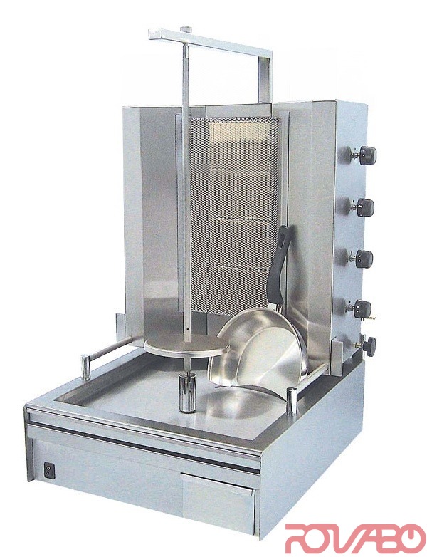 9310 Kcal/h. The motor at the top/bottom. Easy movement of the spit or the body with the burners, according o the model. Electric knife is available as an option.