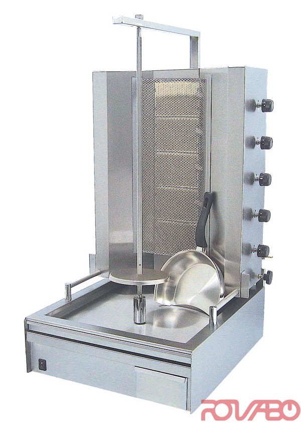 11640 Kcal/h. The motor at the top/bottom. Easy movement of the spit or the body with the burners, according o the model. Electric knife is available as an option.