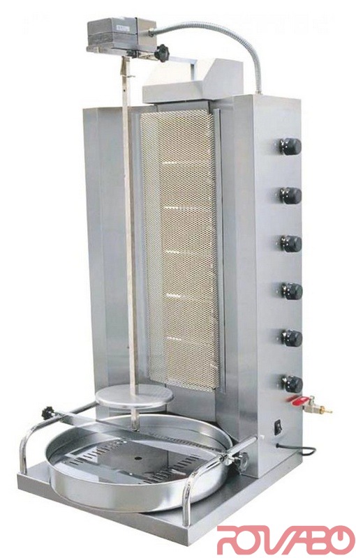 13965 Kcal/h. The motor at the top/bottom. Easy movement of the spit or the body with the burners, according o the model. Electric knife is available as an option.