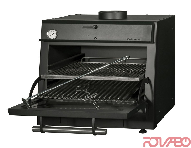 Krosnis pagaminta iš ketaus. Išorė – iš juodo metalo. Kokybiška šiluminė izoliacija. 6 kreipiančiosios. Durelė iš karščiui atsparaus stiklo. Pelenų stalčius. Analoginis termometras. Oro srauto reguliatorius. Krosnis turi įmontuotą riebalų surinkimo talpyklą, kuri palengvins prietaiso valymą ir priežiūrą. Našumas: 60 kg/val. Maksimalus kuro užkrovimas: 3 kg. Iškūrenimo laikas: 30 min. Dūmtraukio skersmuo: 180 mm. Kepimo grotelių matmenys: 585x465 mm. Ekvivalentinis galingumas: 3 kW. Komplekte: mėsos žnyplės, žarsteklis, kepimo grotelės.