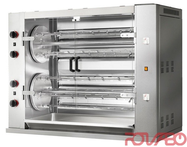 Iš nerūdijančio plieno. 8 iešmų. Padėklo išmatavimai, 870х295х50 mm, riebalų nubėgimui, bulvių ir daržovių kepimui. Vidaus apšvietimas. Krumplinė pavara. Atskiros besisukančios plokštelės su keturiais iešmais, kurie sukasi aplink savo ašį. Esamos plokštės tarp kaitinimo elementų nuimamos. Apsauginė panelė saugo riebalų patekimą ant kaitinimo elementų, ši konstrukcija pratęsia griliaus eksploatavimą. 8 iešmai. Теlpa 48 vištos.