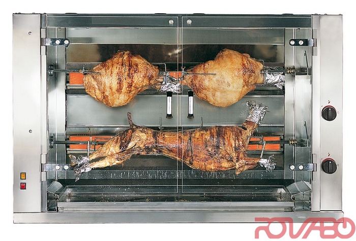 Iš nerūdijančio plieno. Grūdinto stiklo durelės. Dviejų iešmų. Perkepa mėsos gabalus iki 34 cm. Išskrosta aviena po 15 kg ant iešmo. Kiauliena - 2 gabalai po 8 kg ant iešmo. Galima kepti paršelį, kalakutą ir t. t. Iešmų ilgis 1100 mm. Padėklas 1090х540х50 mm, riebalų surinkimui, daržovių ir bulvių kepimui. Apšvietimas griliaus viduje. Grandininė pavara. Apsauginė panelė saugo riebalų patekimą ant kaitinimo elementų, ši konstrukcija pratęsia griliaus eksploatavimą. Valymui nuimamos panelės.