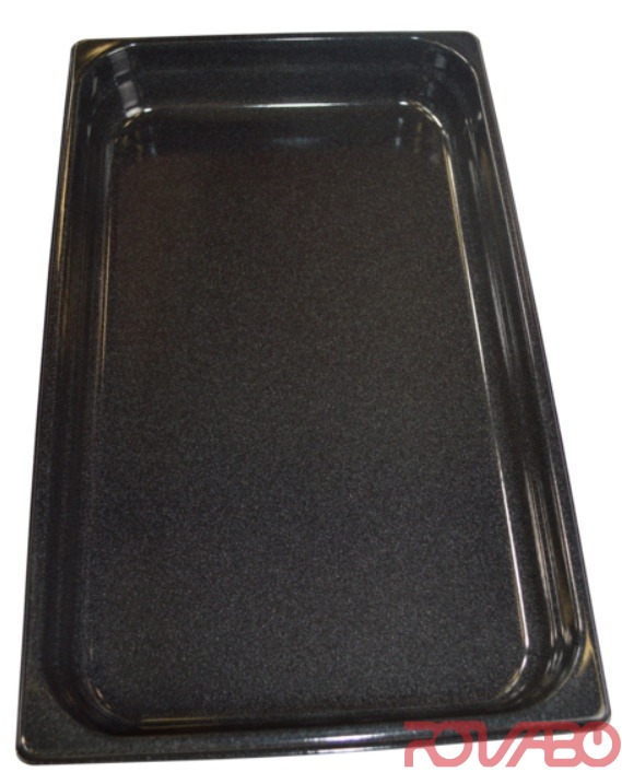Granitinė emaliuota skarda, tinkama kepti, pvz. šnicelį, vištienos krūtinėlę, lašišos juosteles ir kt. Gilus 40 mm variantas - kepsniams ir kitiems patiekalams troškinti savo sultyse, taip pat pyragams.