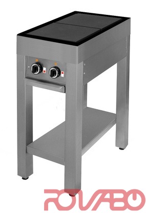 Материалы: корпус из нержавеющей стали «мокрой» шлифовки (скотч-брайт), ножки из трубы нержавеющей стали 50х50 мм. Главные особенности: 2 чугунные конфорки EGO 300х300 мм, могут откидываться для упрощения очистки; съёмный жиросборник под конфорками.