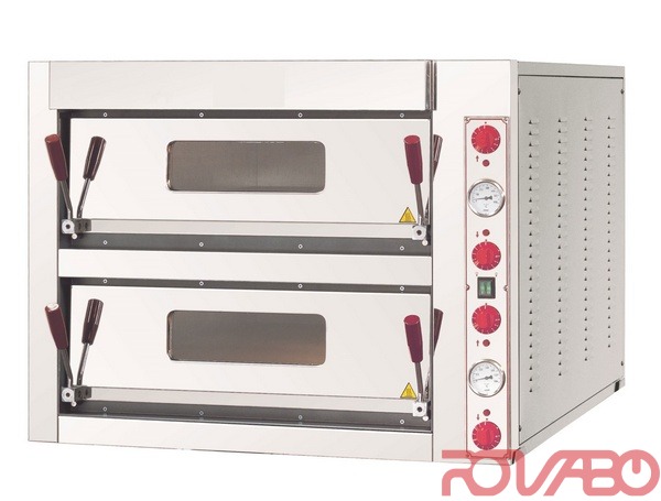 Modelio priekinė dalis iš nerūdijančio plieno. Aliuminizuotas korpusas. Dugnas iš ugniai atsparaus akmens. 2 jų kamerų. Kameros išmatavimai - 990x660x150 mm. Picų talpa Ø300 mm - 6+6 vnt. Atskiras kaitinimo temperatūrų reguliavimas, apatiniams ir viršutiniams kaitinimo elementams - termostato pagalba. Kameros apšvietimas. Didelio tankio izoliacija.