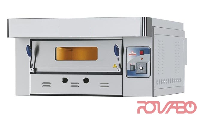 Aliuminizuota plieninė kamera. 1 kameros. Kameros išmatavimai, 610x940x150 mm. Picų talpa Ø 300 mm - 6 vnt. Kaitinimo elementai randasi po ugniai atspariu akmeniu. Dujinis pečius picerijoms ir kepykloms, tai geras pasirinkimas, dėl efektyvumo ir ilgo tarnavimo laiko. Aukštos kokybės elementai. Speciali kameros konstrukcija ir karščio pasiskirstymas duoda optimalius rezultatus.