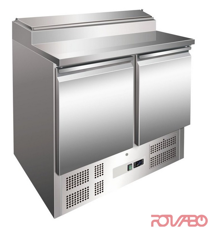 Įrengimas iš nerūdijančio plieno. Dviejų durų. Elektroninis temperatūros reguliavimas, skaitmeninis ekranas rodantis temperatūrą. Elektros sunaudojimas 2.2 kW/24 val. Sienelių izoliacija - 30 mm. Automatinis atitirpinimas. Kondensato išgarintojas. Maksimali temperatūra + 38°C/ drėgmė 60%. Šaldymas ventiliatoriaus pagalba. Šaltnešys R134a. Nugarinėje darbastalio pusėje filtras riebalų surinkimui, kuris nuimamas valymui. Maksimali lentynų, grotelių talpa - 5 vnt. kiekvienam skyriui. Kamera užapvalintais kraštais. Darbo paviršius iš nerūdijančio plieno, išmatavimai 900x320 mm. Anstato talpa: 5 GN 1/6, maksimalus gylis 200 mm. Pristatomi be GN. Komplekte: 7 gastronominių indų laikikliai, 1 lentyna - grotelės GN1/1, 2 poros kreipiančiųjų kiekviename skyriuje.