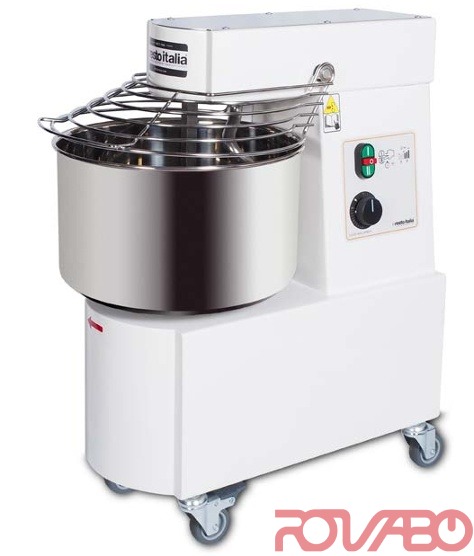 Bowl, spiral, dough breaker and bowl protection are made in stainless steel respecting the health rules. The Spiral Dough Mixer has a chain transmission system and gear motor in oil bath ensuring strength and quietness in time. Bowl dimensions: Ø360x210h. Three phase 2 speed.