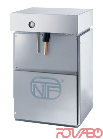 1 м3= 430 кг льда. Низкое потребление (1 л воды / 1 кг льда). Из нержавеющей стали AISI 304 с обработкой скотч-брайтом, испаритель из сплава антикородала с вращающимся ножом. Легкоочищаемый противонакипной фильтр. Простая очистка благодаря закруглённой поверхности. Компоненты из АБС-пластика. Автоматический слив. Стандартное и особое напряжение. Тропичесский класс +43°C.
