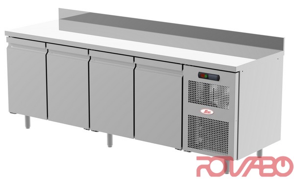 Материалы: нержавеющая сталь AISI 304 со шлифовкой скотч-брайтом. Главные особенности: теплоизоляция из высокоплотного пенополиуретана 50 мм (40 кг/м3); толщина рабочей поверхности - 40 мм; регулируемые ножки из нержавеющей стали h140-190; камеры с закруглёнными внутренними углами для упрощения очистки; дверцы с пружинным механизмом, угол открытия - 95°. Хладагент R404A. Съёмный холодильный агрегат для упрощения обслуживания. Принудительная система вентиляции для обеспечения неизменной внутренней температуры. Эргономичные невыступающие ручки.